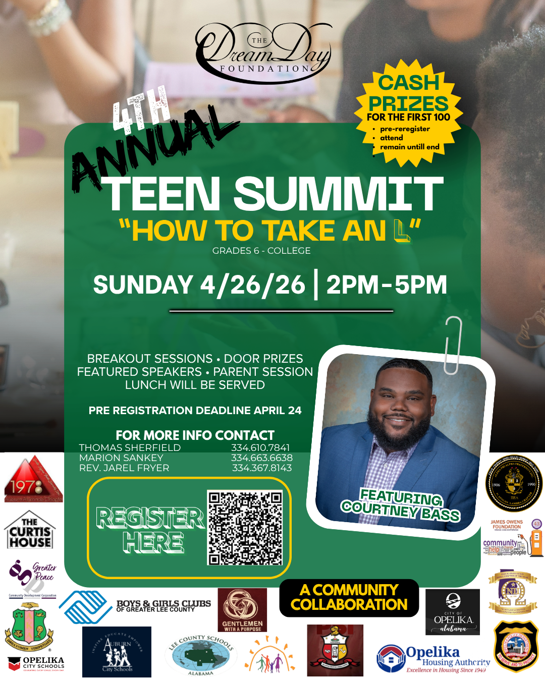 Don’t miss this Teen Summit to be held for all youth grades 6 thru college on Sunday, April 26! This summit is for all youth regardless of race!